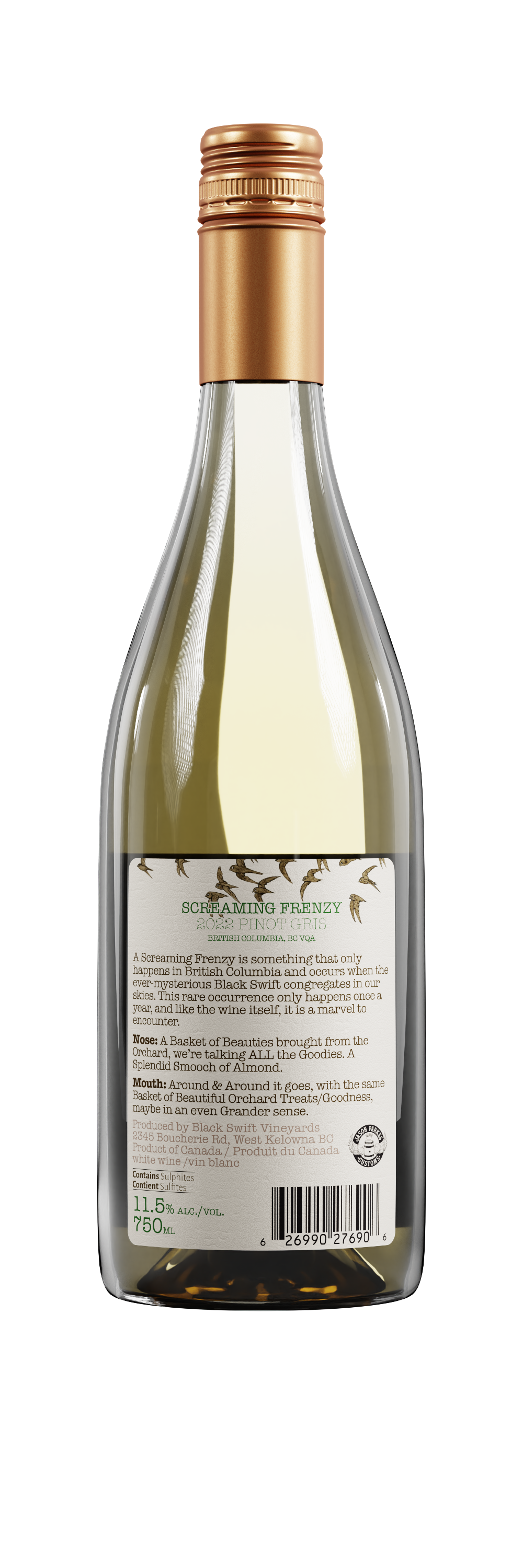 Screaming Frenzy (noun) - A flock of Black Swift birds. A rare occurrence, like the wines themselves...a sight to behold & a marvel to encounter. Built for frenzied everyday consumption.